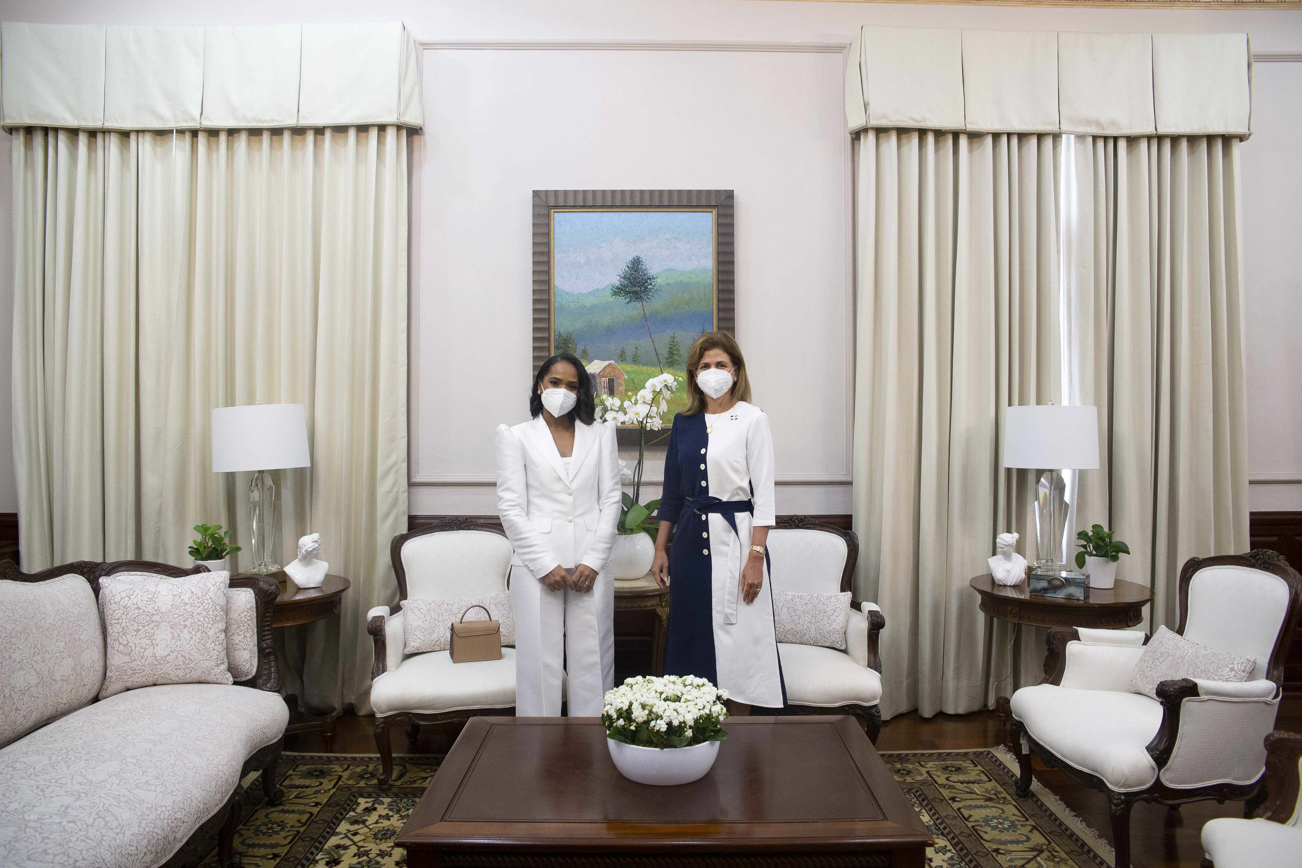 La vicepresidenta Raquel Peña recibió a la Sra. Rosaliz Calderón, quien esta entre las primeras 50 mejores docentes del mundo y es la primera dominicana en ser nominada al Global Teacher Prize, un premio que busca destacar a los mejores docentes de todo el mundo con diferentes premios. VP/ Ruddy Corporan.