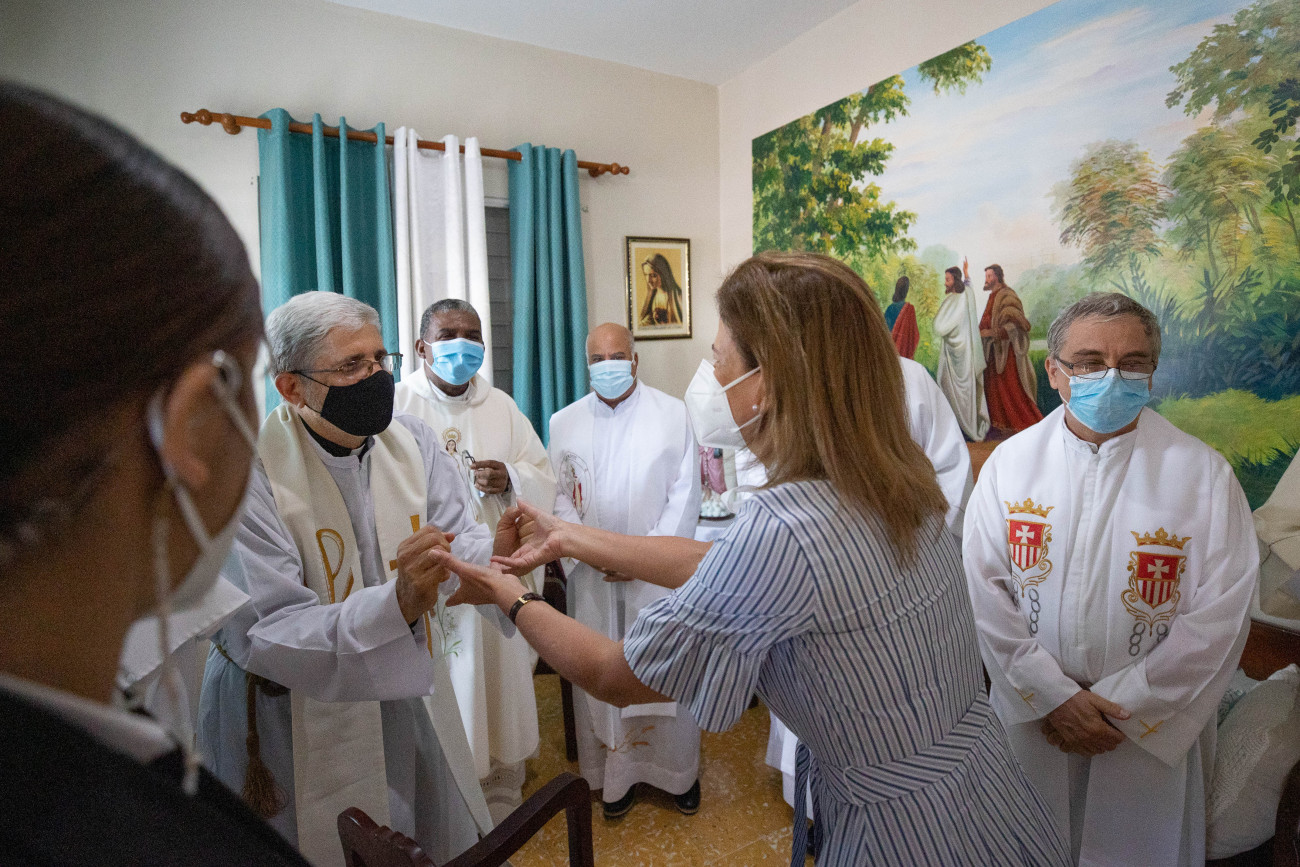 La vicepresidenta sostiene un encuentro junto al obispo Héctor Rafael Rodríguez Rodríguez en la casa cural del Santuario Nacional Nuestra Señora De Las Mercedes. Santo Cerro, La Vega, República Dominicana. 24 de Septiembre 2021. Vp/ Jhon Escalante