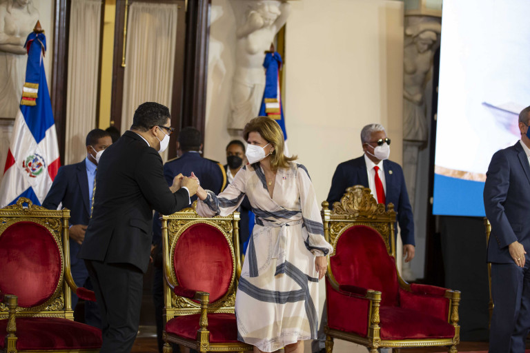 El Presidente Luis Abinader y la vicepresidenta Raquel Peña asistieron a la conmemoración del Día Nacional de la Biblia. VP/Ruddy corporan