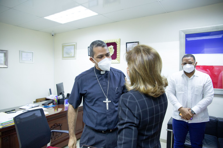 La vicepresidenta Raquel Peña sostuvo una conversación con una comitiva para dialogar sobre la titulación de los apartamentos de las Carreras en Santiago. VP/ Ruddy corporan.