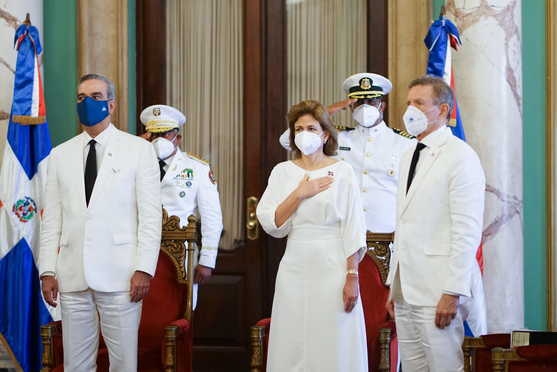 El presidente Luis Abinader, la vicepresidenta Raquel Peña y el Se. Roberto Álvarez, Ministro de Relaciones Exteriores, reciben las Cartas Credenciales de los Embajadores de Turquía, Su Excelencia Yesim Kebapcioglu y de Panamá, Su Excelencia Pablo Perez. Santo Domingo, República Dominicana. 2 Diciembre 2020. Vp/ Jhon Escalante