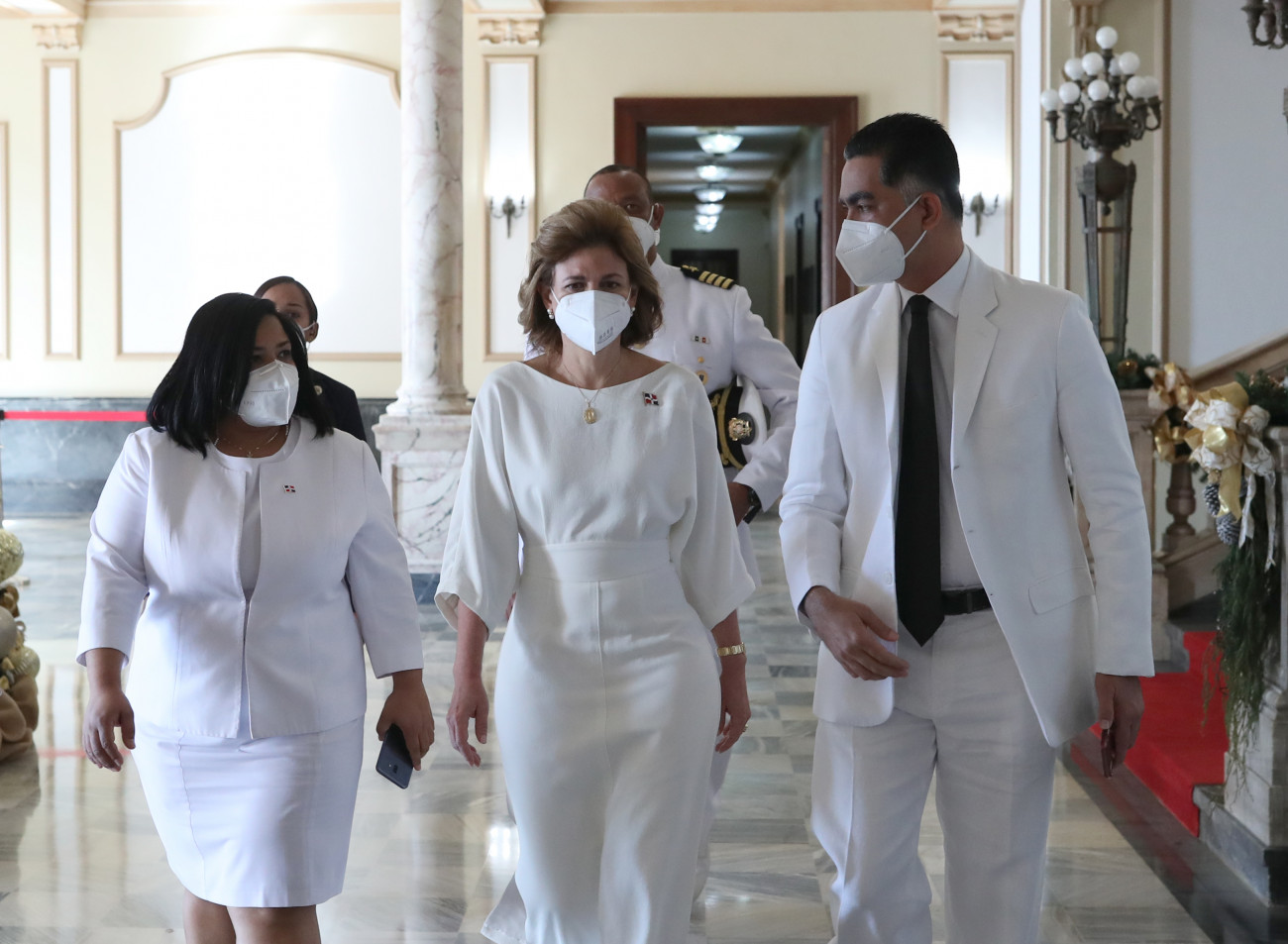 El presidente Luis Abinader, la vicepresidenta Raquel Peña y el Se. Roberto Álvarez, Ministro de Relaciones Exteriores, reciben las Cartas Credenciales de S. E. Yeşim Kebapcıoğlu y S.E. Pablo Javier Perez, nuevos embajadores de las Repúblicas de Turquía y Panamá en la República Dominicana. Salón de Embajadores, Palacio Nacional. Santo Domingo . República Dominicana. 02 de Diciembre del 2020