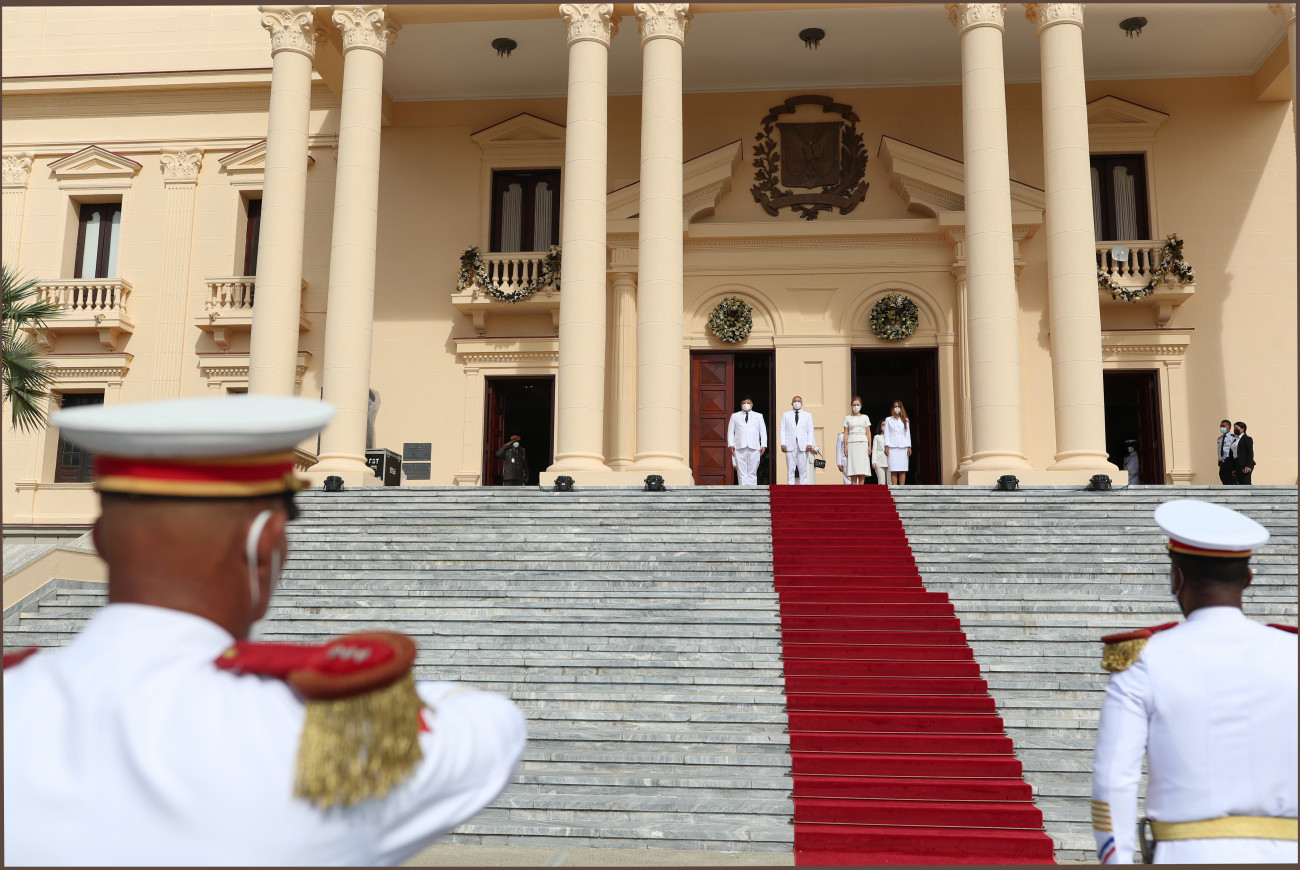 El presidente Luis Abinader, la vicepresidenta Raquel Peña y el Se. Roberto Álvarez, Ministro de Relaciones Exteriores, reciben las Cartas Credenciales de S. E. Yeşim Kebapcıoğlu y S.E. Pablo Javier Perez, nuevos embajadores de las Repúblicas de Turquía y Panamá en la República Dominicana. Salón de Embajadores, Palacio Nacional. Santo Domingo . República Dominicana. 02 de Diciembre del 2020