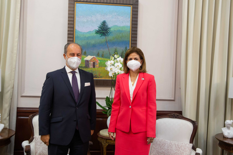 La vicepresidenta Raquel Peña recibió A Su Excelencia Stefano Queirolo, embajador de Italia en República Dominicana junto la Sra. Mattia Lupina, segunda Jefatura. VP/ Ruddy Corporan