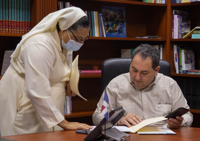 La vicepresidenta Raquel Peña recibió a la Sra, María Trinidadd Ayala Adames, quien esc oordinadora general de la Pastoral de Salud de la Arquidiócesis de Santo Domingo, desde la que ha promovido la creación de una red de más de 150 dispensarios para la atención primaria de salud.