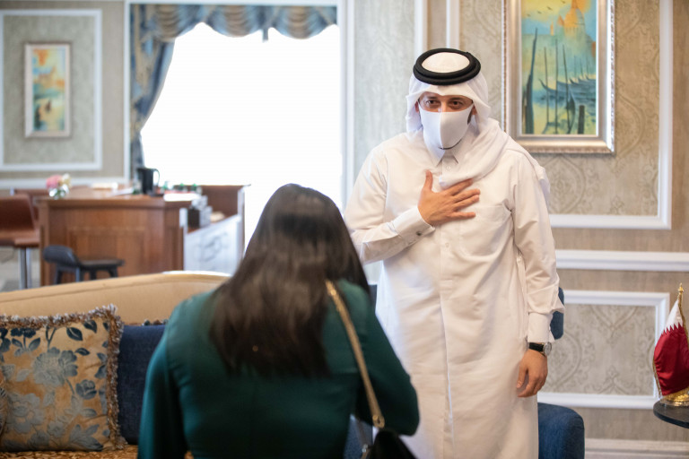La vicepresidenta Raquel Peña se encontró con el CEO del Qatar Investment Authority Fondo Monetario Soberano de Qatar dedicado a la inversión responsableSr. Mansoor bin Ebrahim Al-Mahmoud.. Doha, Qatar. 17 de Noviembre 2021. Vp/ Jhon Escalante