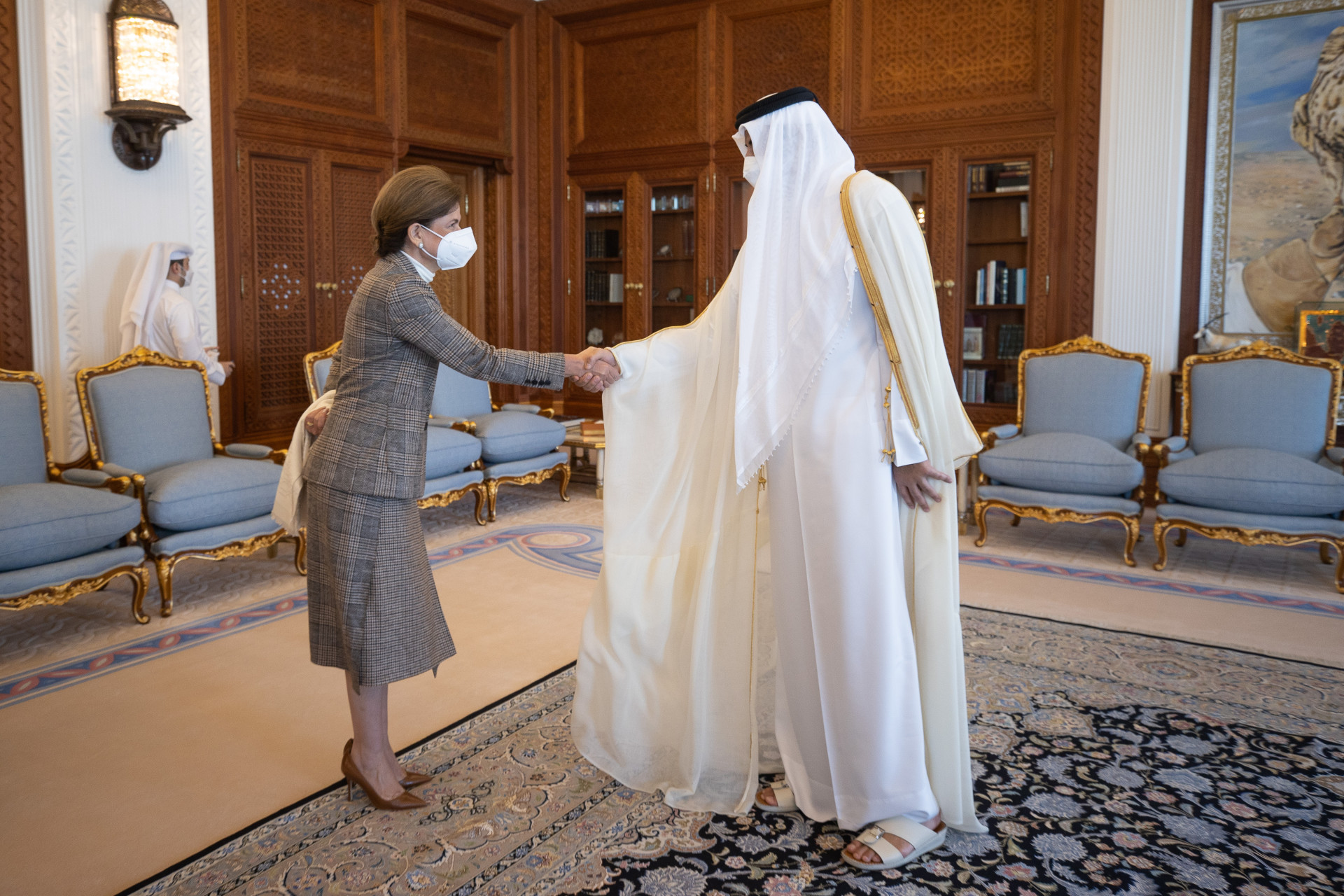 La vicepresidenta Raquel Peña se reunió con Su Alteza, Tamim bin Hamad Al Zani, Emir de Qatar para conversar sobre los planes de cooperación entre ambos países. Doha, Qatar. 18 de Noviembre 2021. Vp/ Jhon Escalante