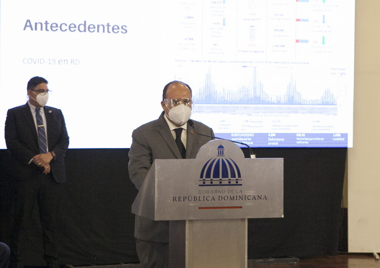 El Presidente Luis Abinader y la vicepresidenta Raquel Peña encabezaron la rueda de prensa para el Estudio Seguridad e Inmunogenicidad de la Aplicación de una 3ra Dosis Refuerzo. Santo Domingo, República Dominicana. 02 de Diciembre 2021. Vp/ Modesto Rabassa