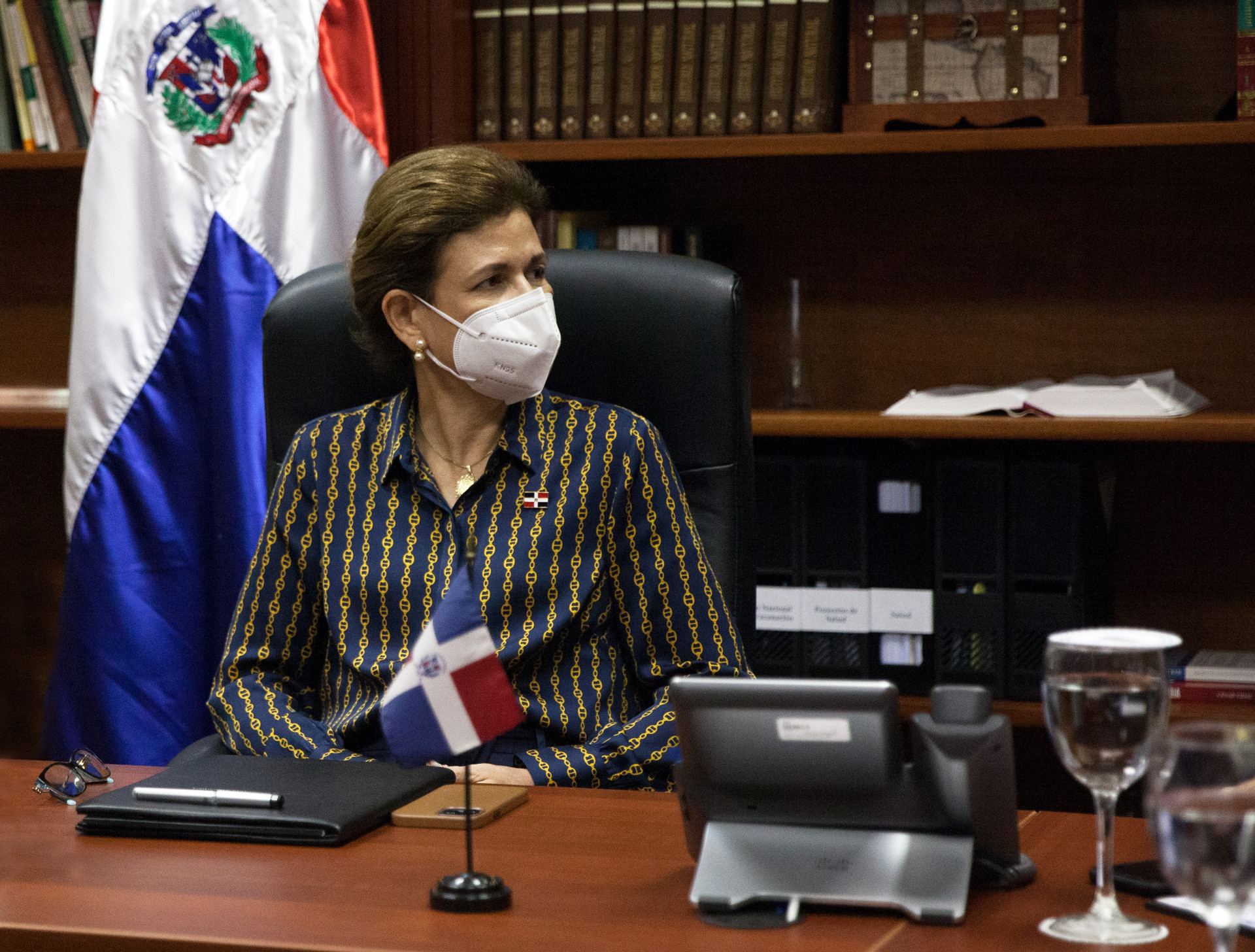 La vicepresidenta Raquel Peña, se reunió con el ministro de industria y comercio, Victor Bisonó, Hugo Rivera viceministro de Asuntos Economicos y Cooperación Internacional del Mirex, Sra. Vilma Arbaje, viceministra de Comercio Exterior del Ministerio de Industria comercio y mipymes, Manuel Diaz Franjul, director de negociaciones comerciales del MIREX. Santo Domingo, República Dominicana. 03 de Diciembre 2021. Vp/ Modesto Rabassa