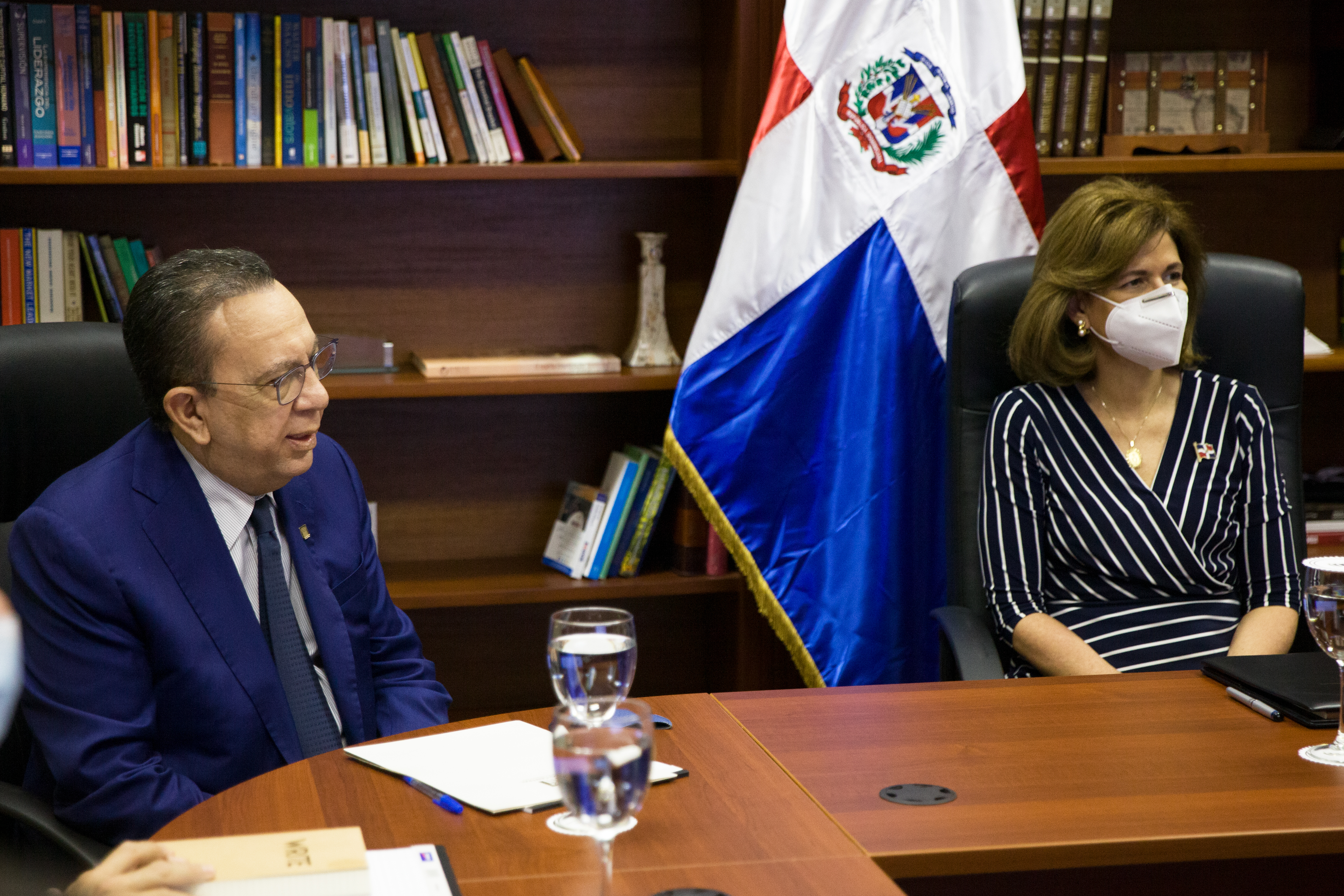 La vicepresidenta Raquel Peña se reunió con el Gobernador del Banco Central, Héctor Valdez Albizu. En dicho encuentro dieron seguimiento al desempeño de la Unidad de Datos de este organismo y como mejorar su funcionamiento. Santo Domingo, República Dominicana. 15 de Diciembre 2021. Vp/ Modesto Rabassa