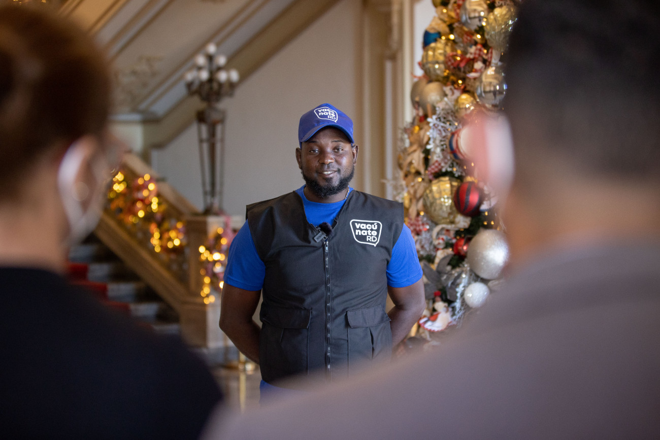 La vicepresidenta Raquel Peña se reunió hoy con 3 choferes encargados del transporte de las vacunas contra el COVID-19 para el Plan Nacional de Vacunación: Vacúnate RD. Santo Domingo, República Dominicana. 22 de Diciembre 2021. Vp/ Jhon Escalante