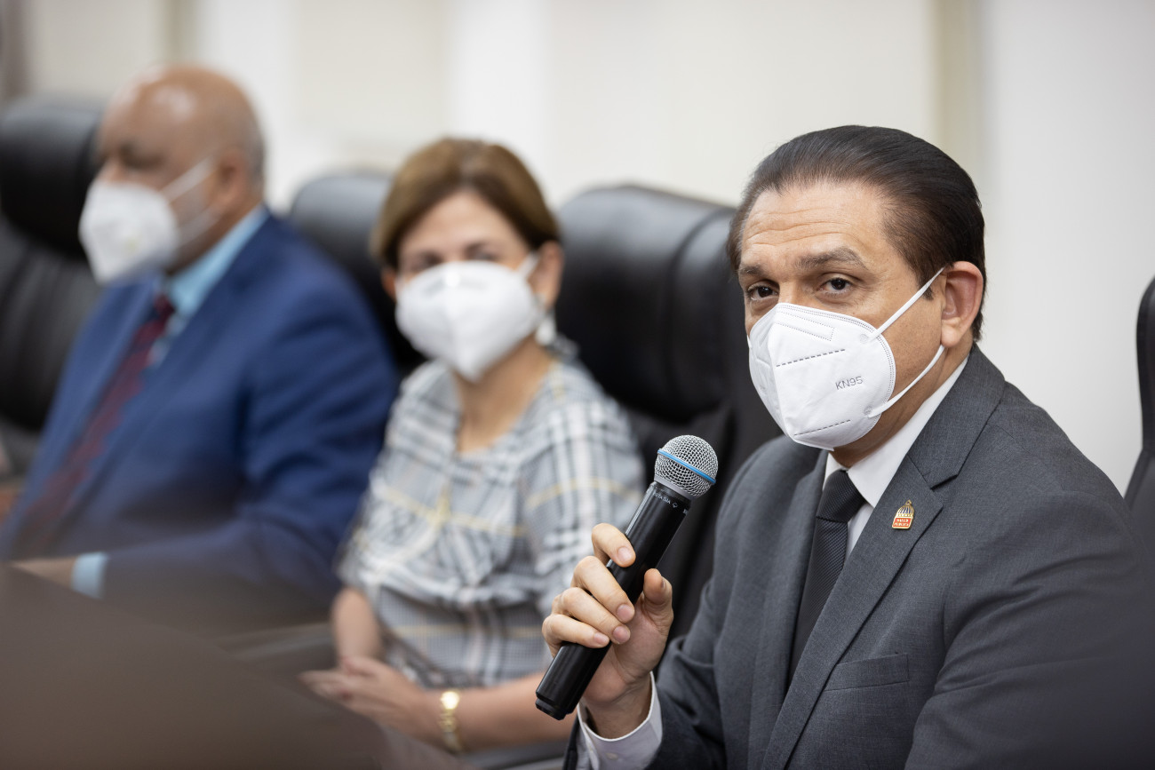 La vicepresidenta Raquel Peña encabezo junto a los ministros Roberto Fulcar y el Dr. Daniel Rivera la rueda de prensa convocada por los ministerios de Educación y Salud Publica, donde hablaron sobre el inicio de clases luego de los días festivos. Santo Domingo, República Dominicana. 7 de Enero 2022. Vp/ Jhon Escalante