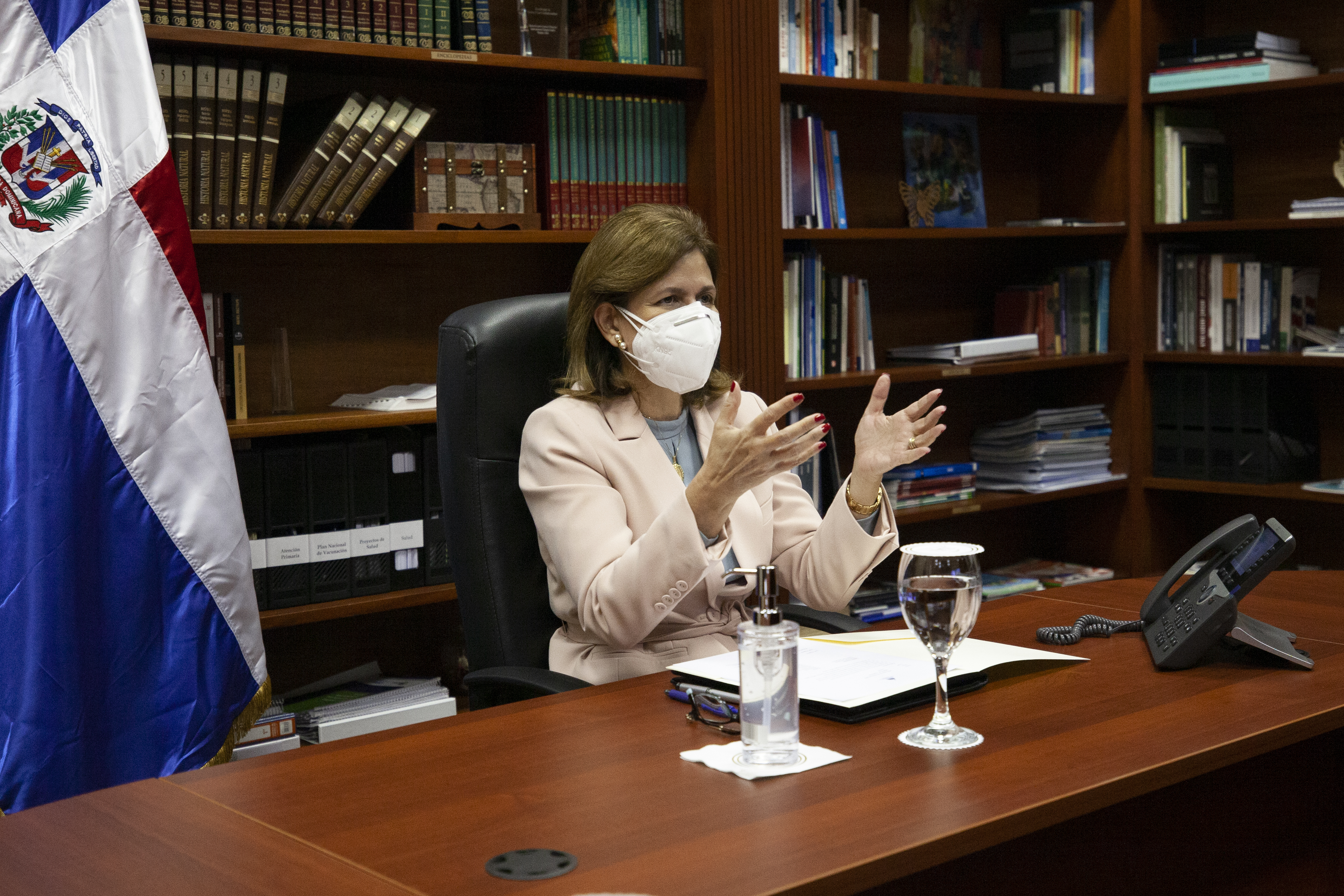 La vicepresidenta Raquel Peña sostuvo una reunión con los empresarios de MGI Caribe con fines de incrementar la inversión extranjera en el país. Estuvieron presentes su presidente, José Algarín; su vicepresidente de Finanzas, Heriberto J. Negrón; su country manager, Pedro Esteban y los Sres. Josefina Vega y Derby de los Santos. Santo Domingo, República Dominicana. 12 de Enero 2021. Vp/ Modesto Rabassa