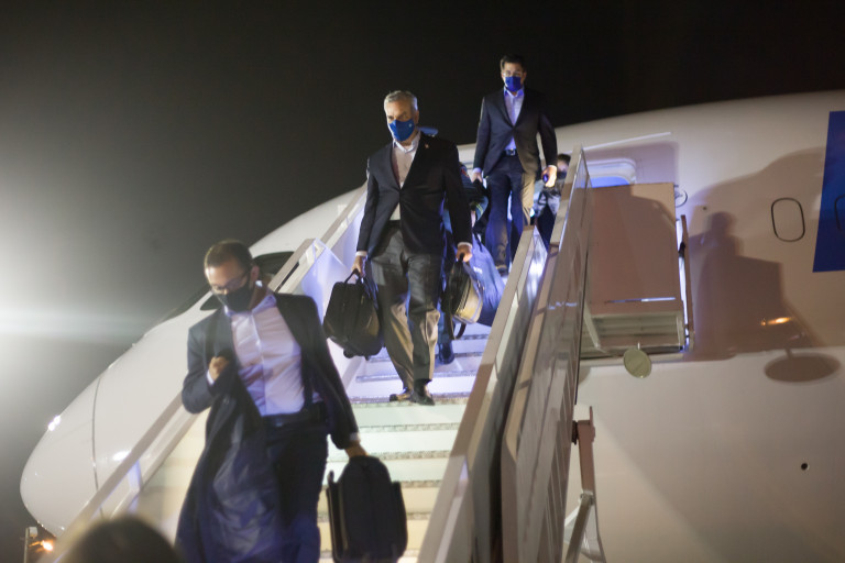 El excelentísimo Sr. Presidente Luis Abinader regresa al país tras su visita a la FITUR 2022 en la ciudad de Madrid. La vicepresidenta Raquel Peña le recibe junto a la comitiva correspondiente. Santo Domingo, República Dominicana. 21 de Enero 2021. Vp/ Modesto Rabassa
