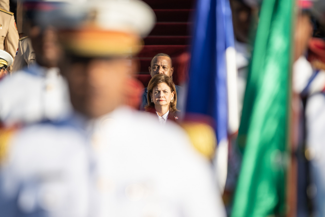 El Gobierno de la República Dominicana rindió homenaje a la Bandera en el marco del mes de la Patria. El presidente Luis Abinader y la vicepresidenta Raquel Peña, junto a funcionarios del Gobierno central estuvieron presentes rindiendo honores ante la tricolor. Santo Domingo. República Dominicana. 23 de Febrero 2022. Vp/ Jhon Escalante