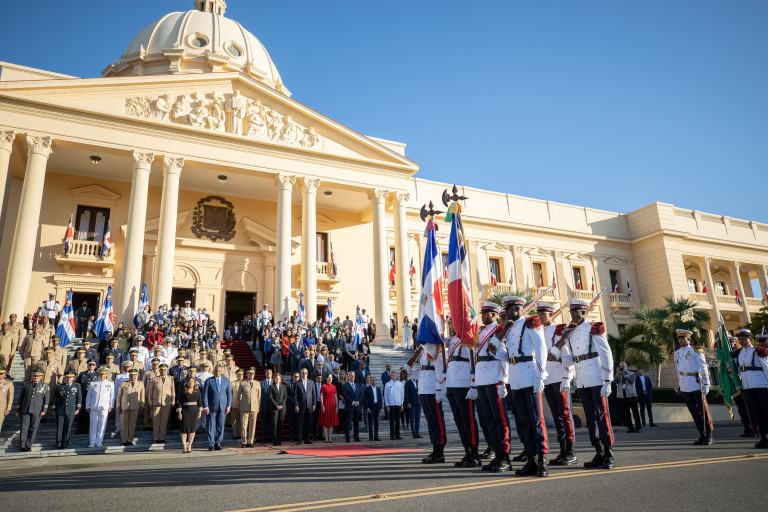 El Gobierno de la República Dominicana rindió homenaje a la Bandera en el marco del mes de la Patria. El presidente Luis Abinader y la vicepresidenta Raquel Peña, junto a funcionarios del Gobierno central estuvieron presentes rindiendo honores ante la tricolor. Santo Domingo. República Dominicana. 23 de Febrero 2022. Vp/ Jhon Escalante