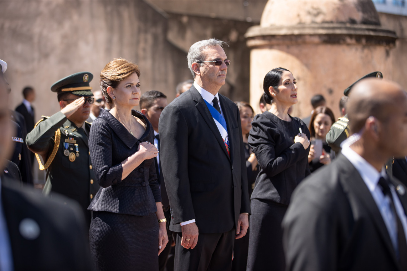 El presidente Luis Abinader ofreció una ofrenda floral en el Altar de la Patria por motivo del 178 aniversario de la Independencia Nacional. La vicepresidenta Raquel Peña y la primera dama Raquel Arbaje estuvieron a su lado durante la ocasión. Santo Domingo. República Dominicana. 27 de Febrero 2022. Vp/ Jhon Escalante