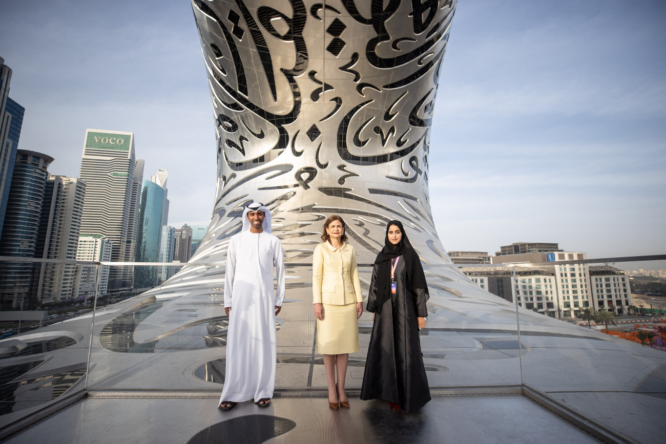 La vicepresidenta Raquel Peña visitó el Museo del Futuro en Dubái, que recientemente abrió oficialmente sus puertas y cuenta con una estructura de siete pisos que imagina un mundo de ensueño impulsado por energía solar. Emiratos Árabes Unidos. Dubai. 04 de Marzo 2022. Vp/ Jhon Escalante