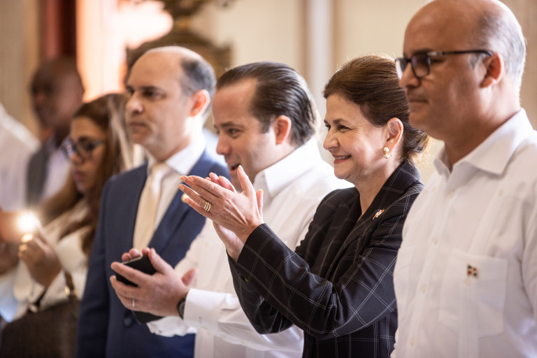 La vicepresidenta Raquel Peña y funcionarios del Gobierno dominicano, recibieron a estudiantes de la escuela primaria Gregorio Luperón de la provincia Puerto Plata. Escuela que tiene el fin de modelo en artes en música por el Ministerio de Educación de la República Dominicana donde realizaron un acto musical en el Palacio Nacional. Santo Domingo, República Dominicana. 9 de Marzo 2022. Vp/ Jhon Escalante