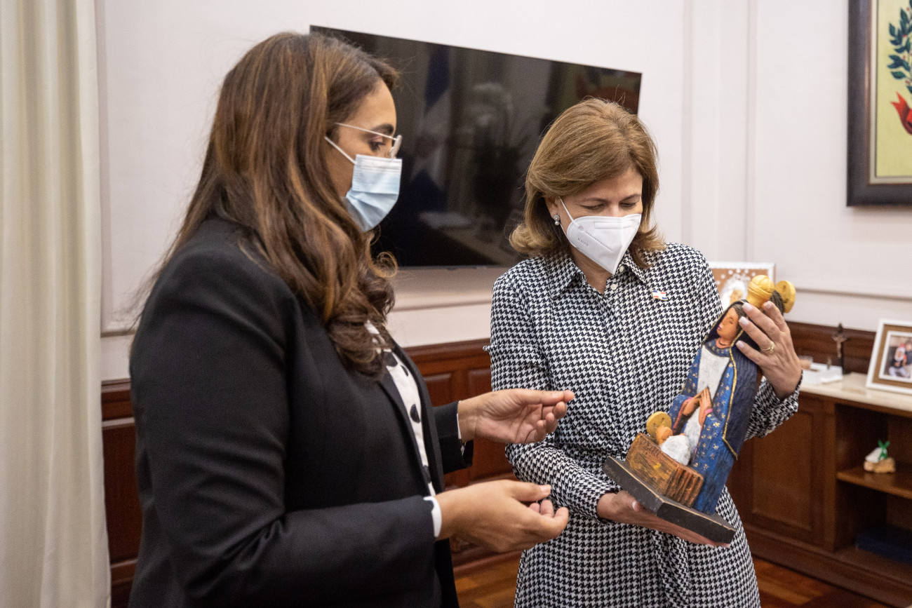 La vicepresidenta Raquel Peña recibió en su despacho a la senadora por la provincia de Azua, Sra. Lía Díaz Santana. Aprovecharon este encuentro para conversar sobre temas de interés público, entre ellos la participación de las mujeres en la política y proyectos para el desarrollo nacional. Santo Domingo, República Dominicana. 15 de Marzo 2022. Vp/ Jhon Escalante