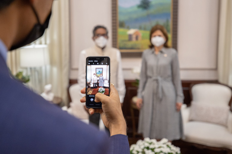 La vicepresidenta Raquel Peña recibió en su despacho una visita de cortesía, que fue realizada por el embajador extraordinario y plenipotenciario de la India en la República Dominicana, S. E. el Sr. Ramu Abbagani, donde interactuaron sobre la importancia de fortalecer los lazos entre naciones. Santo Domingo, República Dominicana. 15 de Marzo 2022. Vp/ Jhon Escalante
