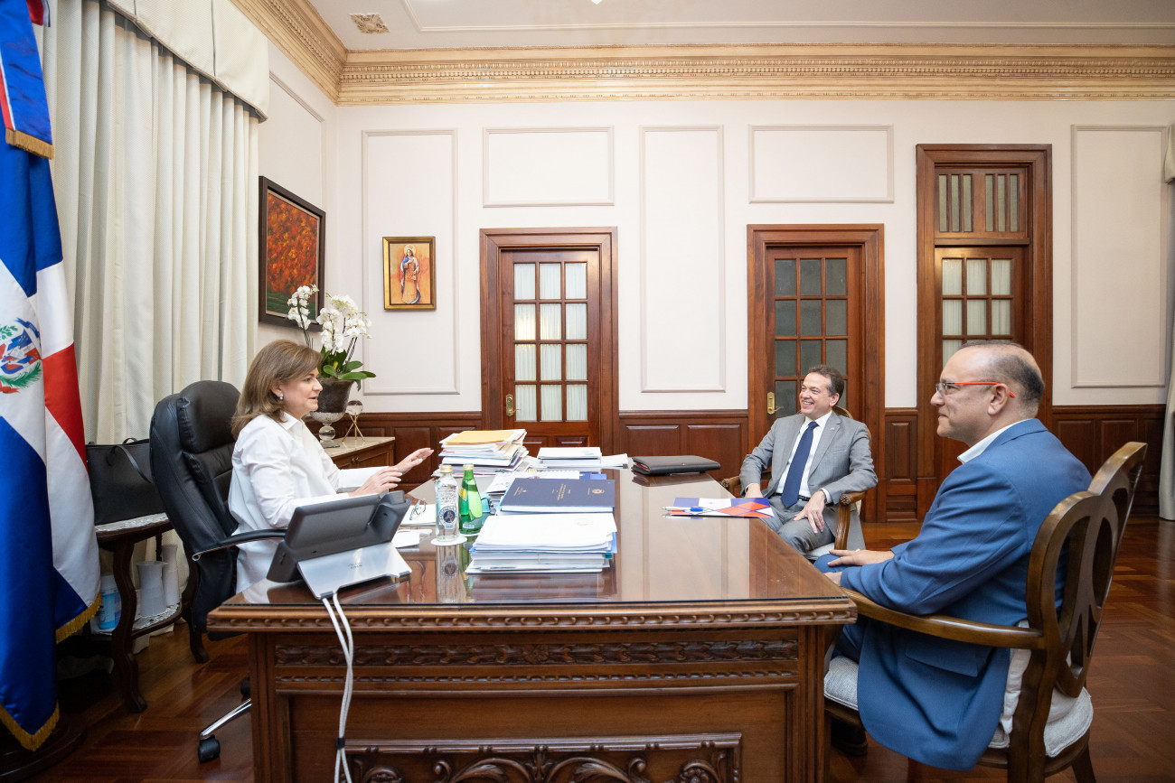 La vicepresidenta Raquel Peña recibió en su despacho a los Sres. Ito Bisonó, ministro de Industria, Comercio y Mipymes; y Ulises Rodríguez, Director General del Centro de Desarollo y Competitividad Industrial.  Santo Domingo, República Dominicana. 17 de Marzo 2022. Vp/ Jhon Escalante