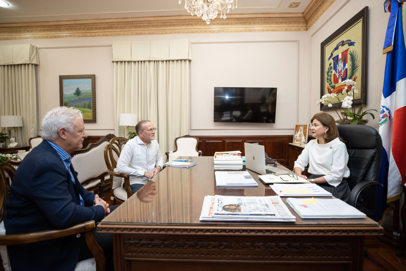 La vicepresidenta Raquel Peña recibió en su despacho a los Sres. Ignacio Méndez y Rodolfo Ganna. Conversaron sobre alternativas de alianza con el sector público, para extender a todo el país la plataforma de apoyo a emprendedores de Pyhex Work. Santo Domingo, República Dominicana. 22 de Marzo 2022. Vp/ Jhon Escalante