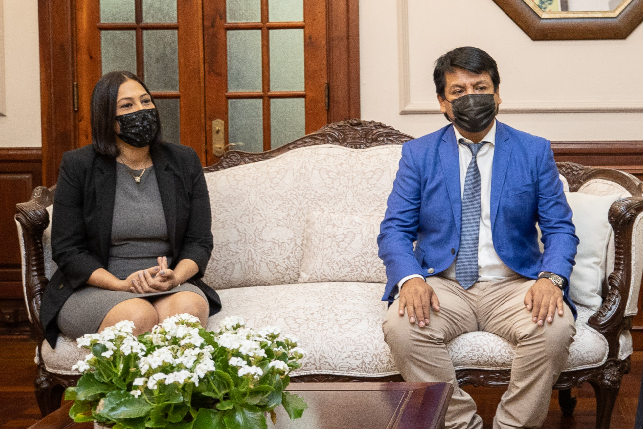 La vicepresidenta Raquel Peña recibió la visita de Jorge Añaños, Arturo Marroquín, Lizzie González y Erick Mónico. La mandataria y las altas autoridades de Industrias San Miguel, conversaron sobre cómo trabajan para afianzar su compromiso con la calidad y la sostenibilidad en la República Dominicana. Santo Domingo, República Dominicana. 25 de Marzo 2022. Vp/ Jhon Escalante
