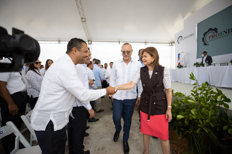 La vicepresidenta Raquel Pena asistió al acto de inauguración de seis naves industriales y la construcción del sistema contra incendios en San Pedro de Macorís. Proindustria está a cargo del proyecto que beneficiará a personas residentes de esta localidad e impulsará la competitividad industrial del país. San Pedro, República Dominicana. 01 de Abril 2022. Vp/ Jhon Escalante