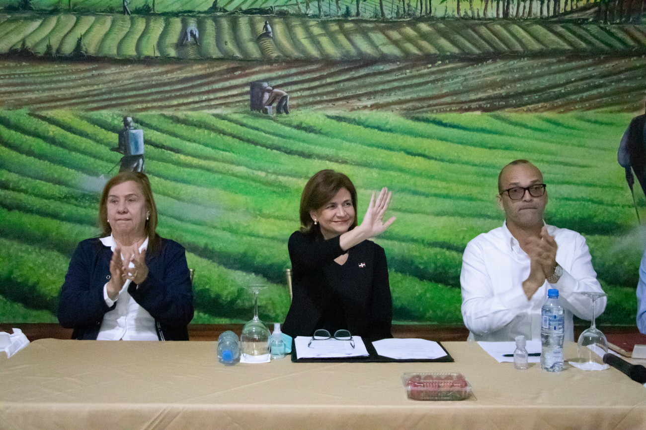 La vicepresidenta Raquel Peña sostuvo una reunión con productores y agricultores del municipio de Constanza, en el que conversaron sobre los planes de desarrollo agrícola e iniciativas para el impulso de este sector en la región. Constanza, República Dominicana. 02 de Abril 2022. Vp/ Emmanuel Solano