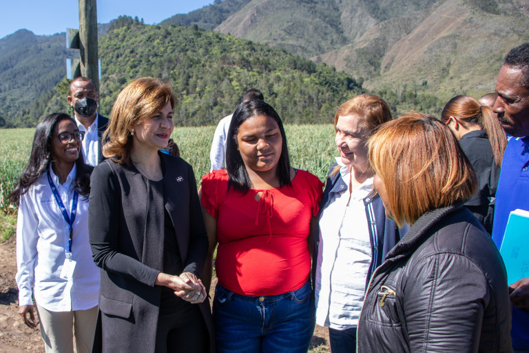 La vicepresidenta Raquel Peña sostuvo un encuentro con productores agrícolas en Villa Poppy, Constanza. La mandataria expresó el deseo de que sigan creciendo y puedan exportar sus productos al extranjero. Constanza, República Dominicana. 02 de Abril 2022. Vp/ Emmanuel Solano