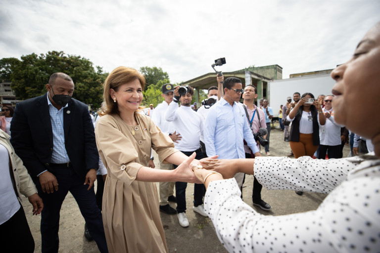 La vicepresidenta Raquel Peña asistió a un conjunto de actividades comunitarias en ese municipio, iniciando con la apertura de una furgoneta móvil para la venta de alimentos, proporcionados por INESPRE. Las furgonetas móviles facilitan el suministro de alimentos frescos a bajo costo, para beneficio de las comunidades en las que se instalan. Villa Altagracia, República Dominicana. 08 de Abril 2022. Vp/ Jhon Escalante