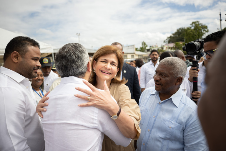 La vicepresidenta Raquel Peña asistió a un conjunto de actividades comunitarias en ese municipio, iniciando con la apertura de una furgoneta móvil para la venta de alimentos, proporcionados por INESPRE. Las furgonetas móviles facilitan el suministro de alimentos frescos a bajo costo, para beneficio de las comunidades en las que se instalan. Villa Altagracia, República Dominicana. 08 de Abril 2022. Vp/ Jhon Escalante