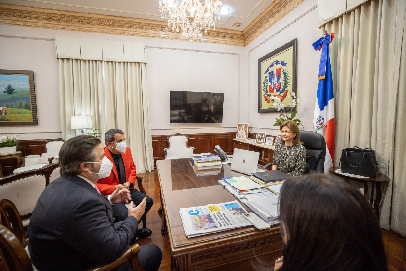 La vicepresidenta Raquel Peña recibió la visita de cortesía del economista Xavier Sala-i-Martín y Peter A. Prazmowski, director del Consejo Nacional de Competitividad. Conversaron sobre temas económicos de interés actual y su impacto global. Santo Domingo, República Dominicana, 25 de Abril 2022. Vp/ Jhon Escalante
