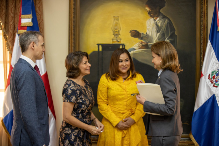 La vicepresidenta Raquel Peña recibió la visita del «Grupo de Alto Nivel de la OEA para el fortalecimiento de la participación política de las mujeres». Durante este encuentro, conversaron sobre la importancia de seguir implementando iniciativas que permitan atender a las recomendaciones de las Misiones de Observación Electoral de esta organización para fomentar una mayor integración de las mujeres al ámbito político. Santo Domingo, República Dominicana, 09 de Mayo 2022. Vp/ Jhon Escalante