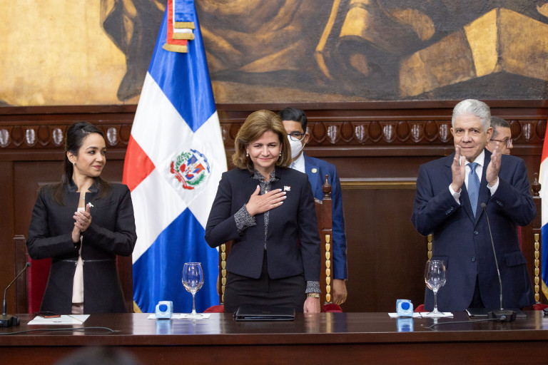 La Vpdta. Raquel Peña asistió a la ceremonia de conmemoración del 80 aniversario del derecho al sufragio femenino en la República Dominicana. El momento fue propicio para recordar los esfuerzos y sacrificios que hicieron posible el voto de las mujeres dominicanas desde el año 1942 en el país. Santo Domingo, República Dominicana, 16 de Mayo 2022. Vp/ Jhon Escalante
