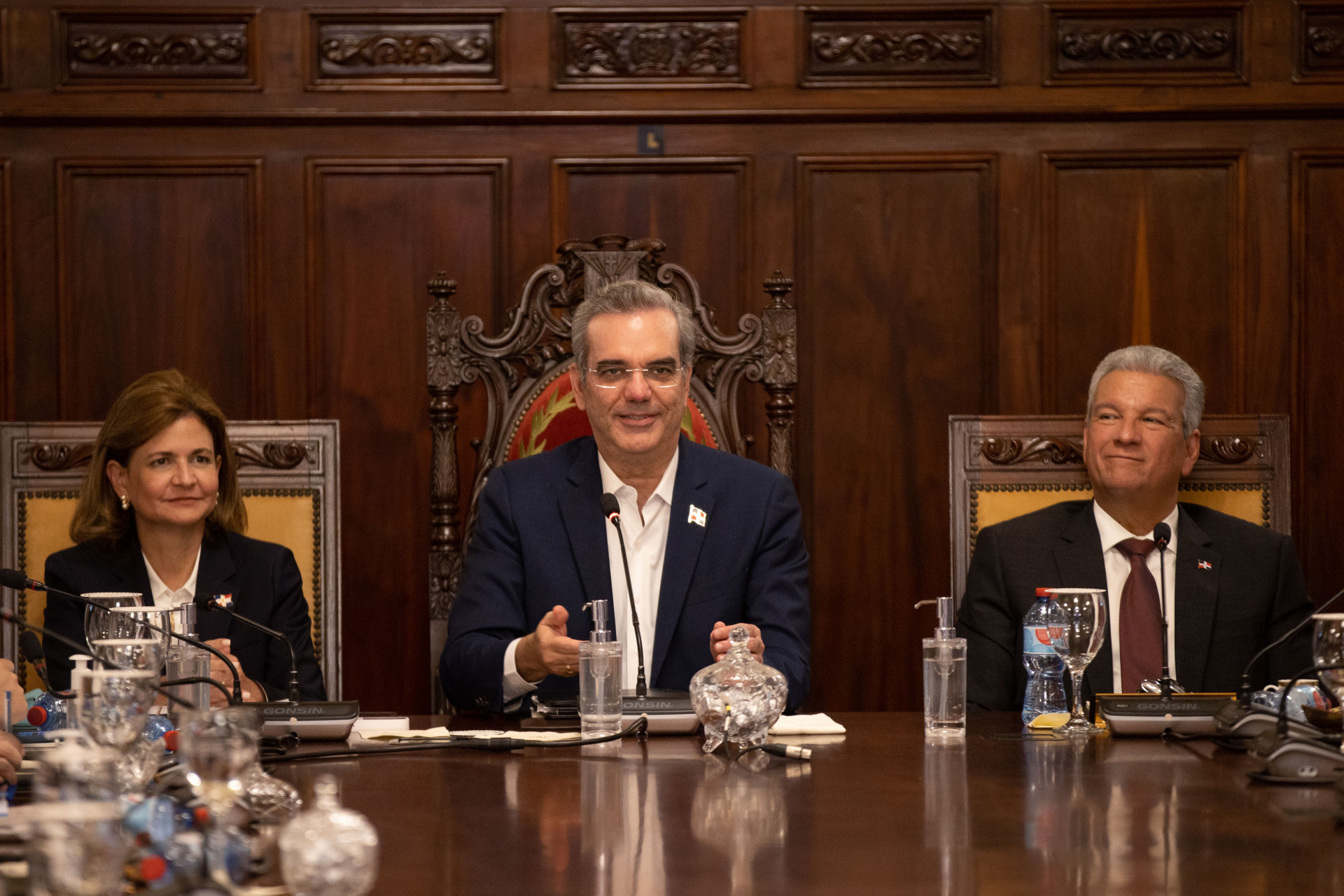 Con la presencia de la vicepresidenta Raquel Peña, el presidente Luis Abinader encabezó el Consejo de Gobierno ampliado, para dar seguimiento a las iniciativas que se impulsan desde esta administración e identificar las oportunidades que ayudarán a mejorar los servicios que se brindan a la población. Santo Domingo, República Dominicana, 18 de Mayo 2022. Vp/ Jhon Escalante