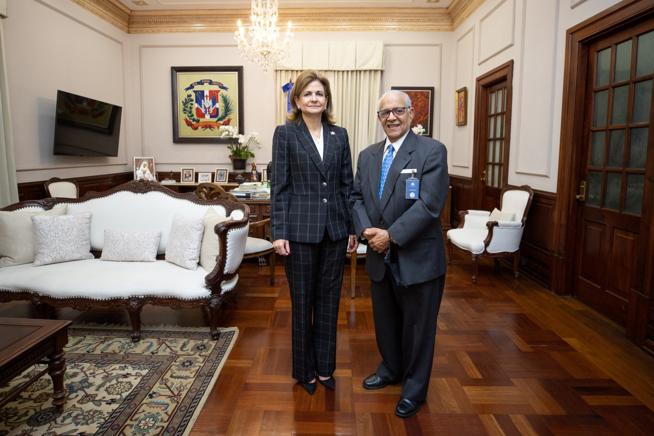 La vicepresidenta Raquel Peña recibió la visita de cortesía Ercilio Veloz Burgos, conductor del programa televisivo ''El pueblo cuestiona''. Durante su encuentro, conversaron acerca de los aportes que este programa lleva a los dominicanos cada semana tras casi 53 años al aire. Santo Domingo, República Dominicana, 24 de Mayo 2022. Vp/ Jhon Escalante