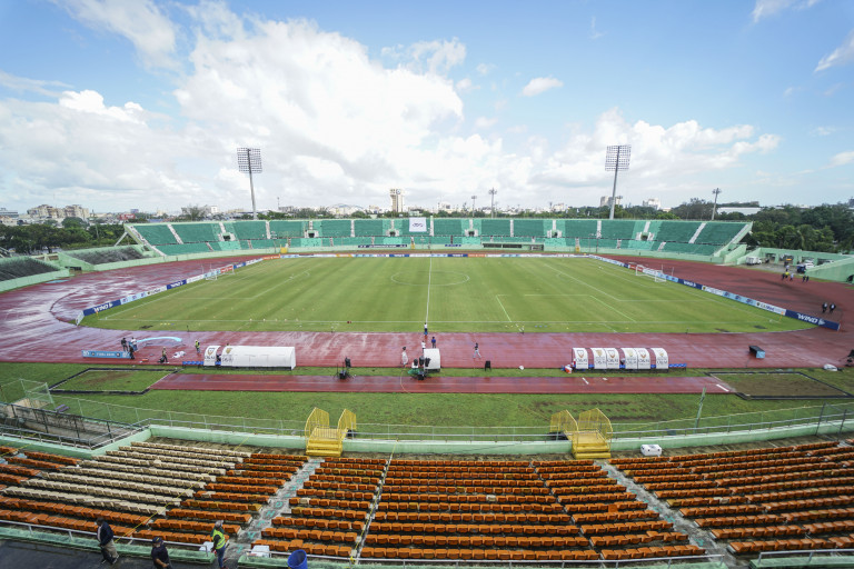 El presidente Luis Abinader y la vicepresidenta Raquel Peña encabezan a la inauguración del Centro de Capacitación Dr. Rafael Abinader, en el partido de vuelta y definitivo de la final de la Liga Dominicana de Fútbol (LDF) 2020 entre la O&M FC y los Delfines del Este FC. Santo Domingo, República Dominicana. 13 de Diciembre 2020. Vp/ Jhon Escalante