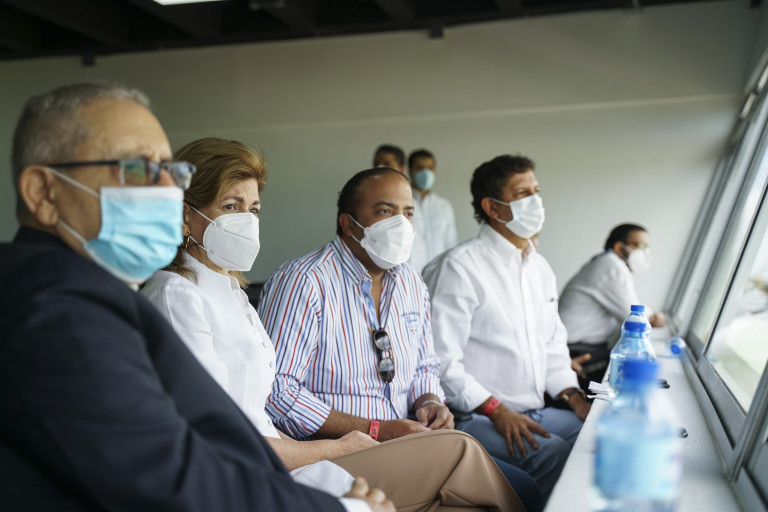 El presidente Luis Abinader y la vicepresidenta Raquel Peña encabezan a la inauguración del Centro de Capacitación Dr. Rafael Abinader, en el partido de vuelta y definitivo de la final de la Liga Dominicana de Fútbol (LDF) 2020 entre la O&M FC y los Delfines del Este FC. Santo Domingo, República Dominicana. 13 de Diciembre 2020. Vp/ Jhon Escalante