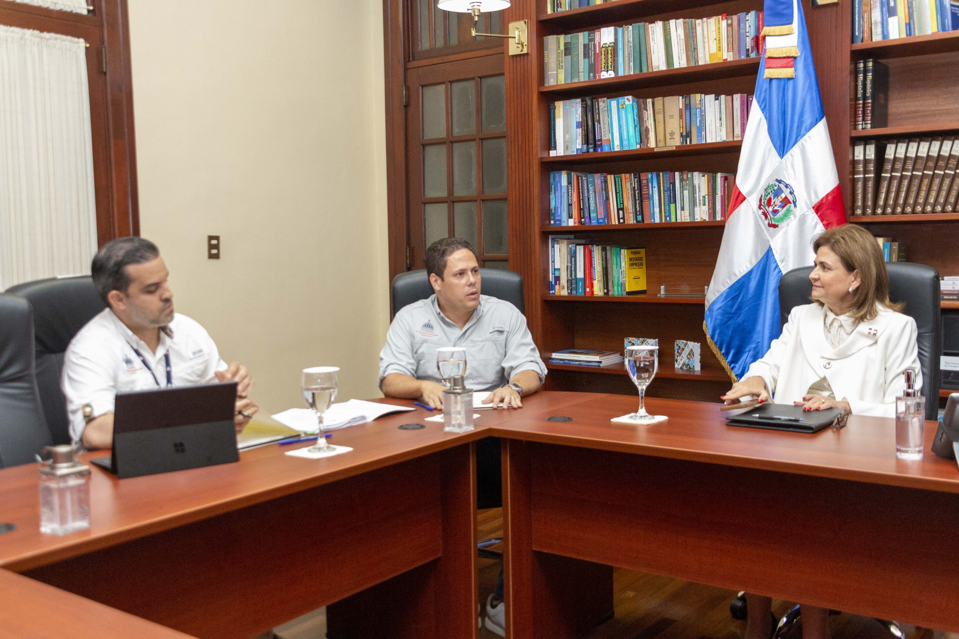 La vicepresidenta Raquel Peña se reunió con el director del Servicio Nacional De Salud, el Dr. Mario Lama; el Sr. Carlos Bonilla, ministro del Ministerio de Vivienda y Edificaciones y otros representantes de estas entidades. Santo Domingo, República Dominicana, 6 de Julio 2022. Vp/ Amehd Gitte