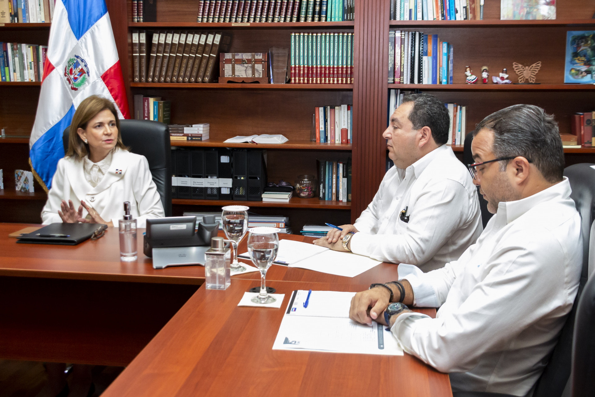 La vicepresidenta Raquel Peña se reunió con el director del Servicio Nacional De Salud, el Dr. Mario Lama; el Sr. Carlos Bonilla, ministro del Ministerio de Vivienda y Edificaciones y otros representantes de estas entidades. Santo Domingo, República Dominicana, 6 de Julio 2022. Vp/ Amehd Gitte
