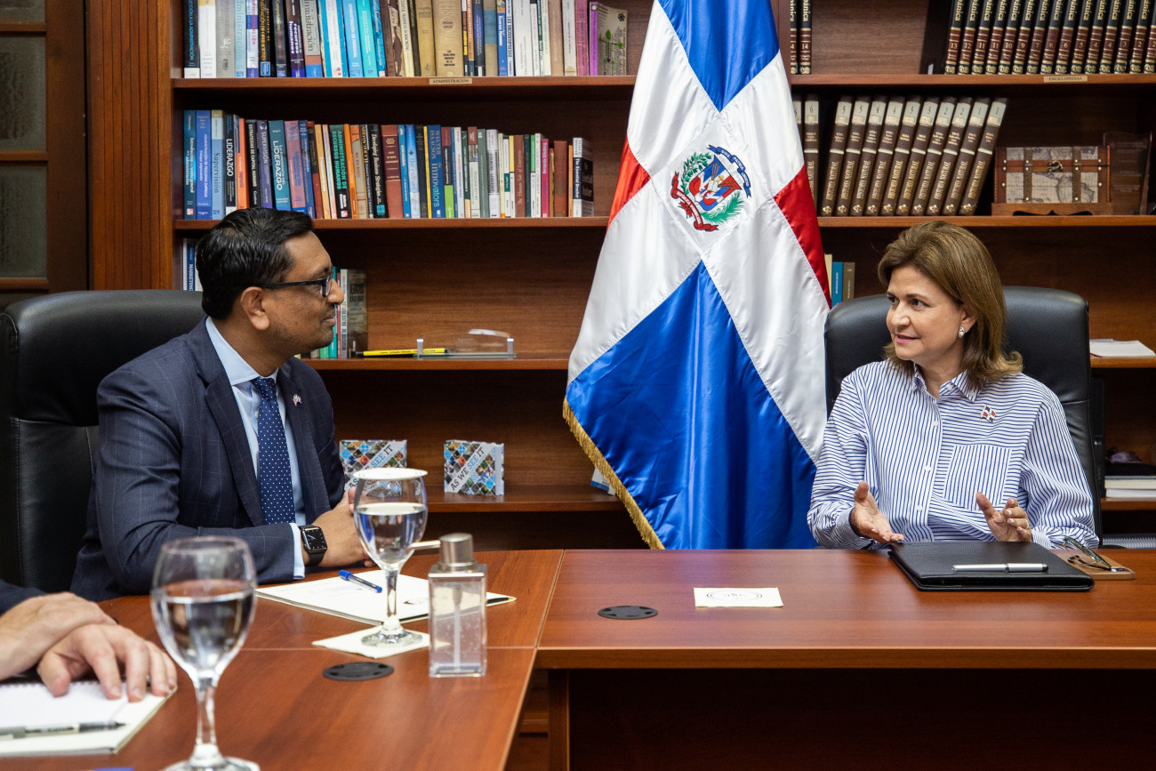 La vicepresidenta Raquel Peña sostuvo un encuentro con su excelencia, el Sr. Mockbul Ali OBE, embajador de Su Majestad Británica en República Dominicana, en conjunto con una delegación de la Agencia de Crédito Exportador del Reino Unido, en la que dialogaron sobre la labor de esta organización en el financiamiento de proyectos en los países de Latinoamérica y el fortalecimiento de las relaciones bilaterales y comerciales para el desarrollo de los pueblos. Santo Domingo, República Dominicana, 12 de Julio 2022. Vp/ Jhon Escalante