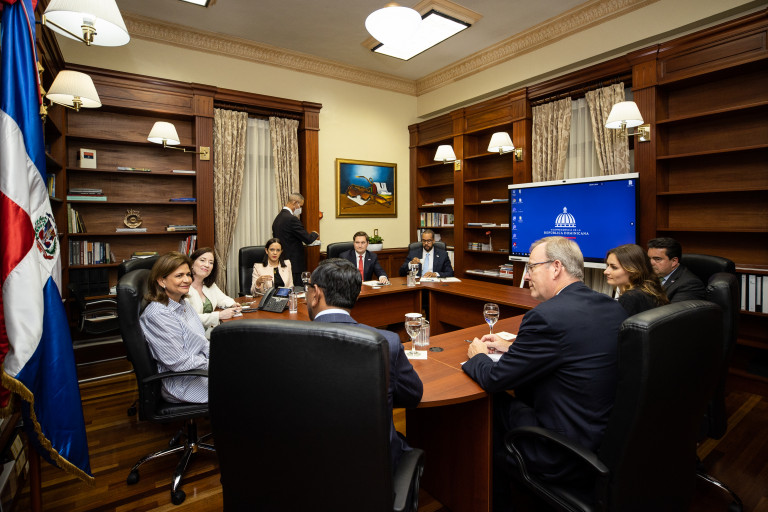 La vicepresidenta Raquel Peña sostuvo un encuentro con su excelencia, el Sr. Mockbul Ali OBE, embajador de Su Majestad Británica en República Dominicana, en conjunto con una delegación de la Agencia de Crédito Exportador del Reino Unido, en la que dialogaron sobre la labor de esta organización en el financiamiento de proyectos en los países de Latinoamérica y el fortalecimiento de las relaciones bilaterales y comerciales para el desarrollo de los pueblos. Santo Domingo, República Dominicana, 12 de Julio 2022. Vp/ Jhon Escalante