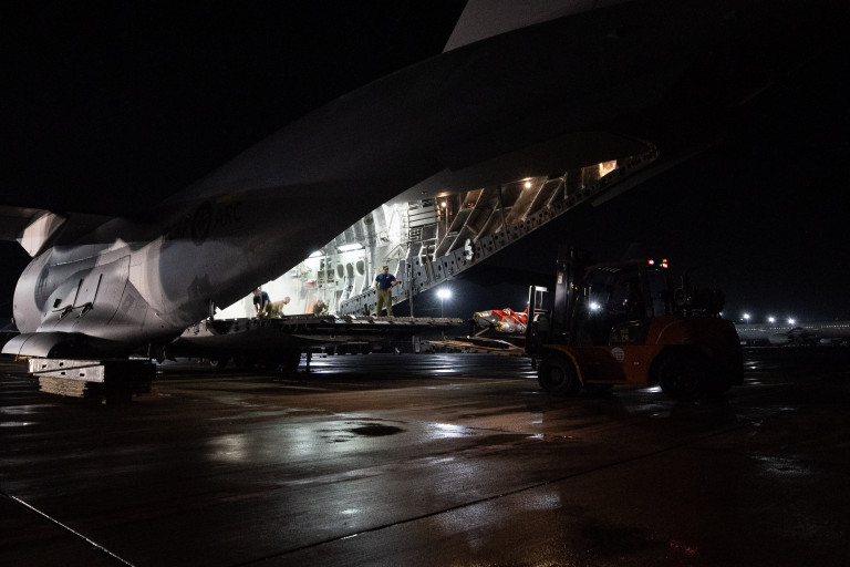 Llegada de avión canadiense al país, con insumos para rescate de mineros