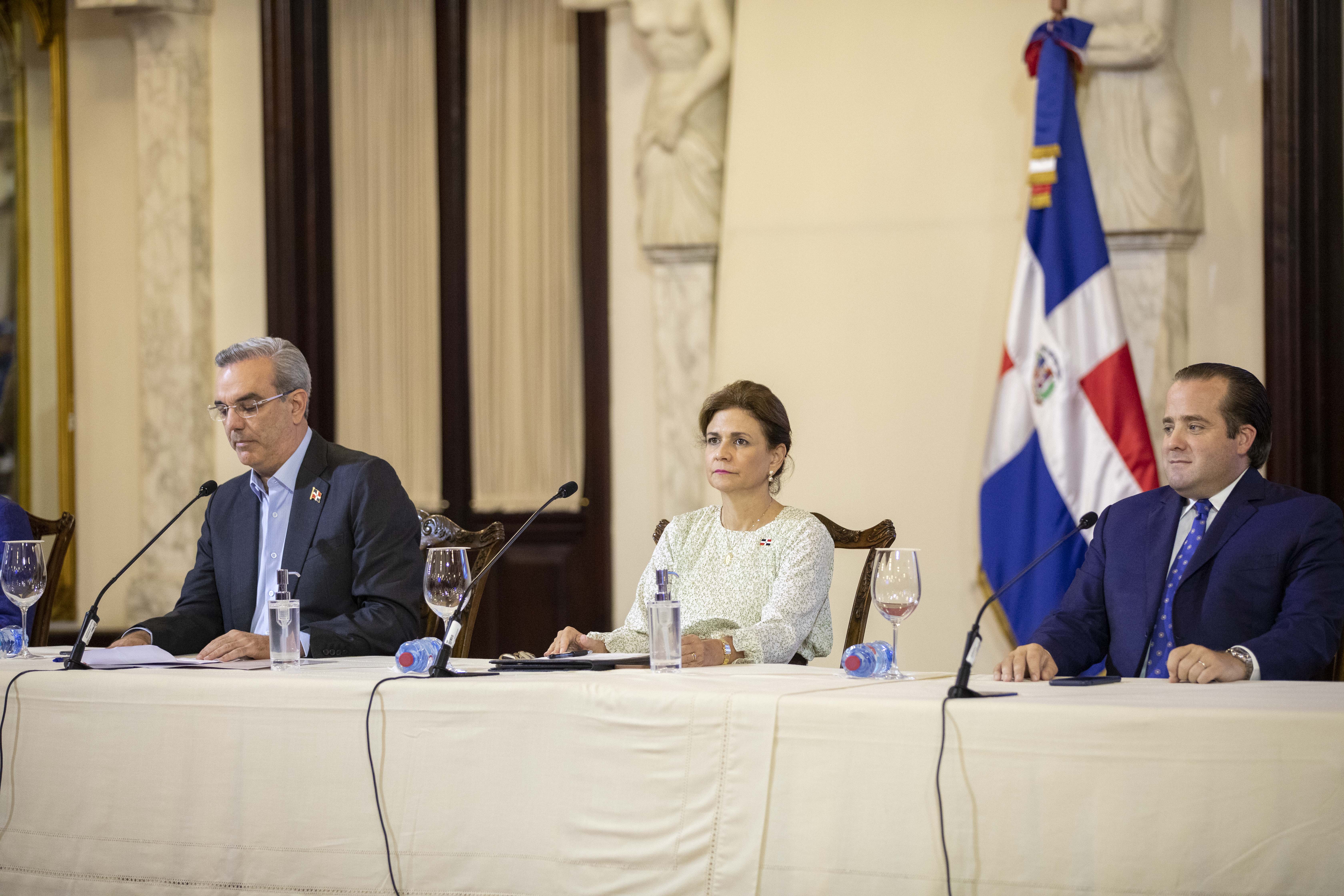 Rueda de prensa con el Excmo. Pdte. Luis Abinader y y otros funcionarios