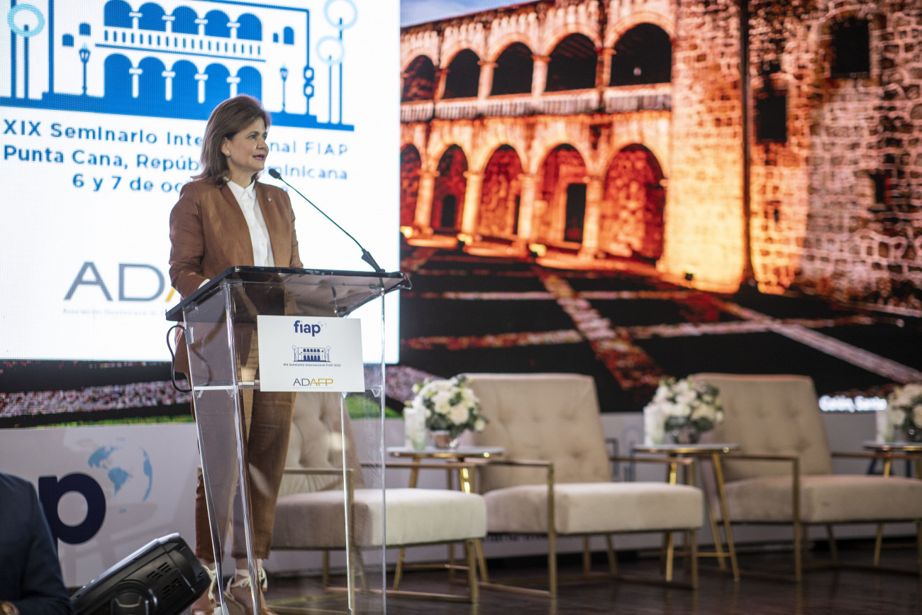 La vicepresidenta Raquel Peña asistió al XIX Seminario Internacional de la Federación Int. de Administradoras de Fondos de Pensiones, cuyo lema este año es «Desafíos y soluciones para las pensiones de hoy y mañana». Punta Cana, República Dominicana. 06 de Octubre 2022. Vp/ Jhon Escalante