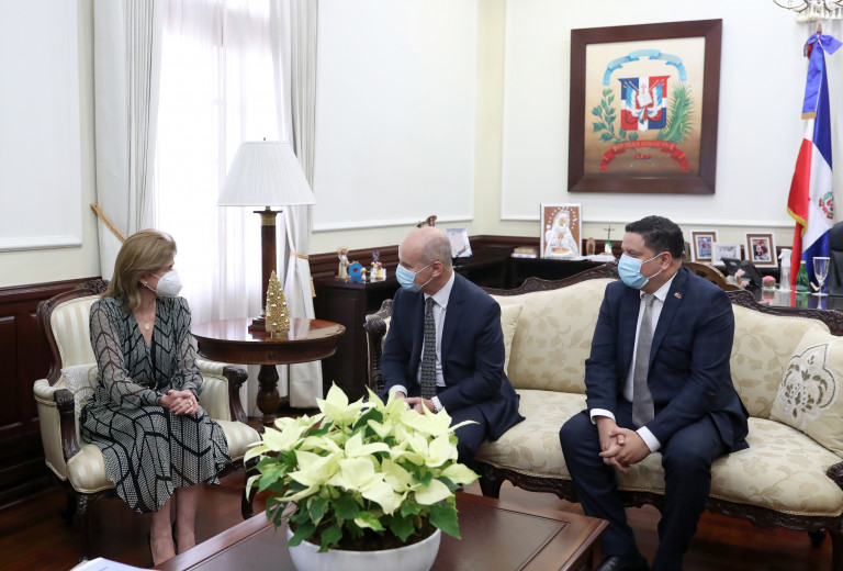La vicepresidenta Raquel Peña sostiene una reunión con el Sr. Felipe Wilenmann, presidente y el Sr. Amaury Abreu, gerente general de la empresa Suiza SICPA Dominicana. Despacho de la vicepresidencia, Palacio Nacional. Santo Domingo. República Dominicana. 16 de Diciembre del 2020. VP/Ricardo Rojas