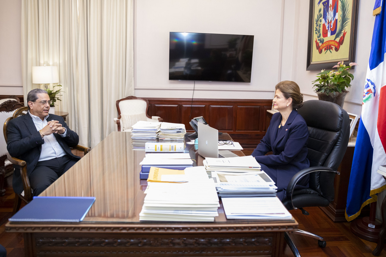 La vicepresidenta Raquel Peña sostuvo un encuentro con el ministro de Vivienda y Ordenamiento Territorial de Panamá, el señor Rogelio Paredes Robles, y el viceministro de Cooperación y Relaciones Internacionales del MIVED, el señor Guarionex Estrella. Santo Domingo, República Dominicana, 21 de Octubre 2022. Vp/ Amehd Gitte