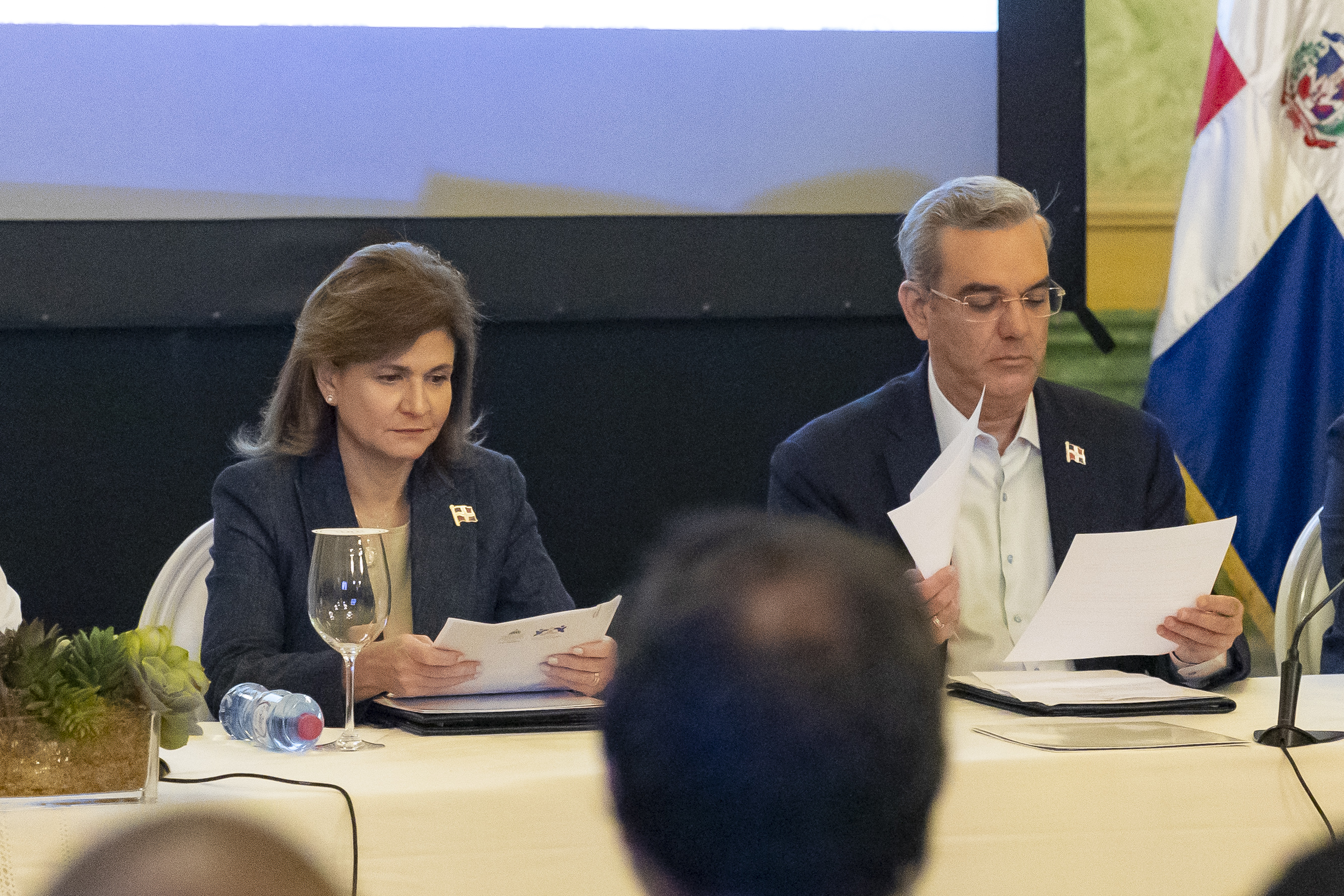 El presidente Luis Abinader encabezó, junto a la vicepresidenta Raquel Peña, el acto de presentación de «MapaInversiones», una plataforma del BID que facilitará información a la ciudadanía sobre compras y contrataciones públicas relacionadas a gestiones de emergencia que se ejecuten por la ocurrencia de fenómenos atmosféricos. Santo Domingo, República Dominicana, 17 de Noviembre 2022. Vp/ Amehd Gitte